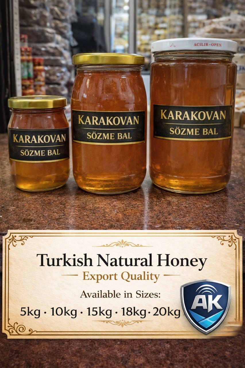 Premium Turkish raw honey, naturally harvested and carefully filtered. Rich flavor, high nutritional value, and bulk export packaging available worldwide.